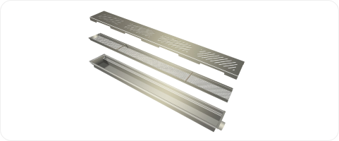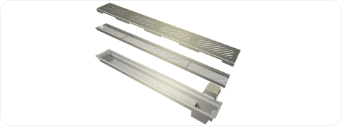Para atender as normas da ANVISA, a Vale Verde desenvolveu Ralos Lineares em Inox composto por: